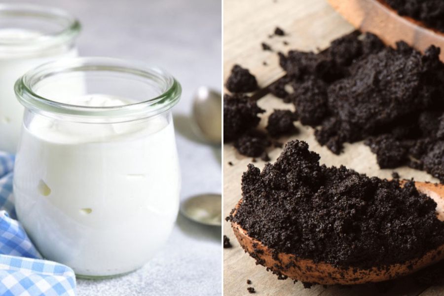 Sữa chua là nguyên liệu dưỡng da rất phổ biến và được ưa chuộng nhờ giàu hàm lượng các chất như enzyme, axit lactic và protein. Trong đó, hợp chất axit lactic có khả năng làm mờ vết thâm và thúc đẩy tái tạo tế bào da mới. Khi bạn kết hợp bã cà phê và sữa chua với nhau sẽ có tác dụng cải thiện tình trạng da khô, bong tróc hiệu quả.