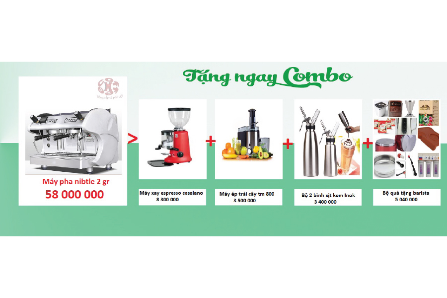 Bùng nổ khuyến mãi lớn khi mua máy pha cafe 2 vòi Nibuint, khách hàng sẽ nhận được combo bộ quà tặng trị giá lên tới 16.860.000đ, gồm có các sản phẩm: