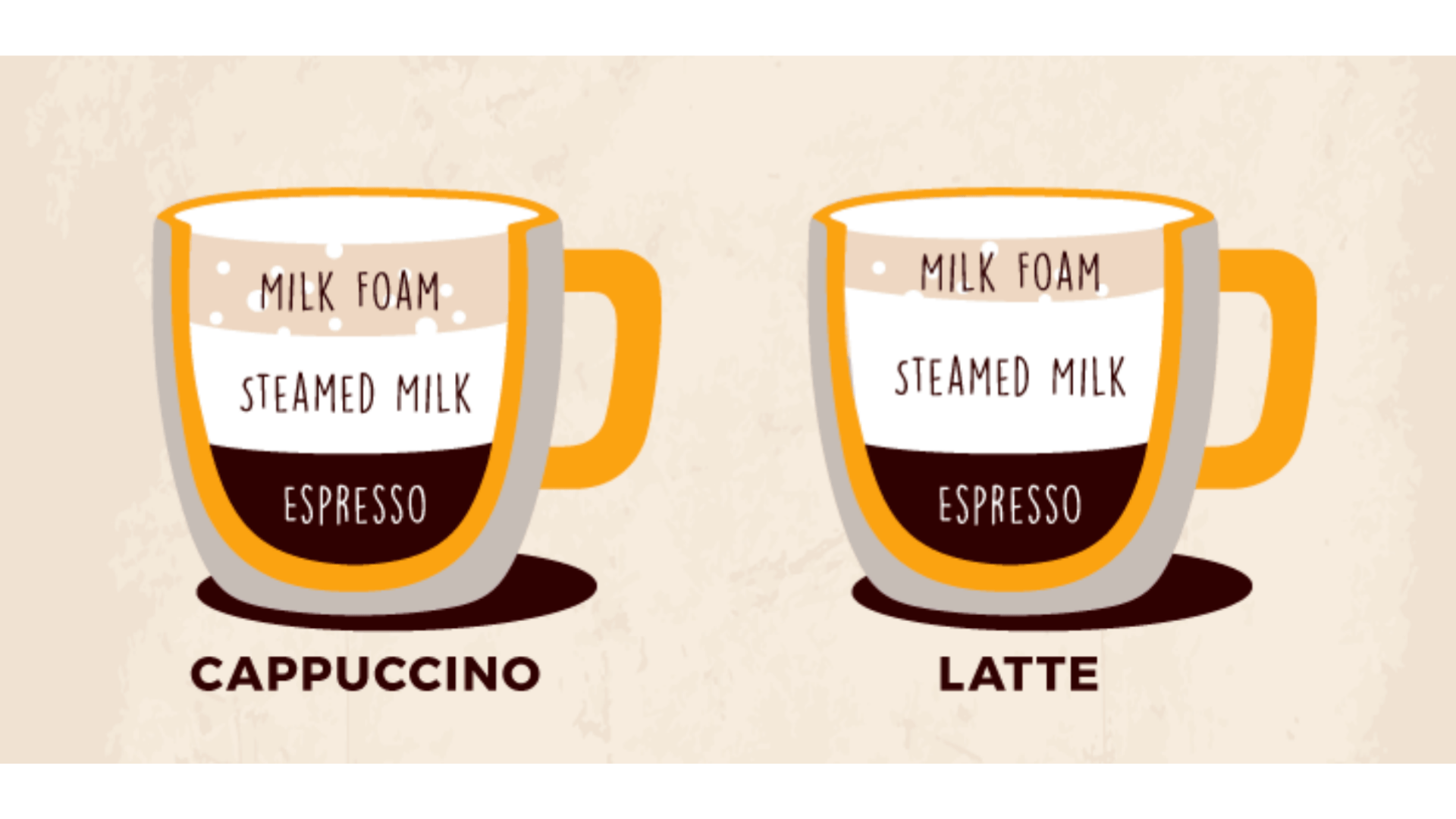 Sự khác biệt dễ nhận thấy nhất giữa Cappuccino và Latte chính là tỷ lệ giữa espresso, sữa nóng và bọt sữa.